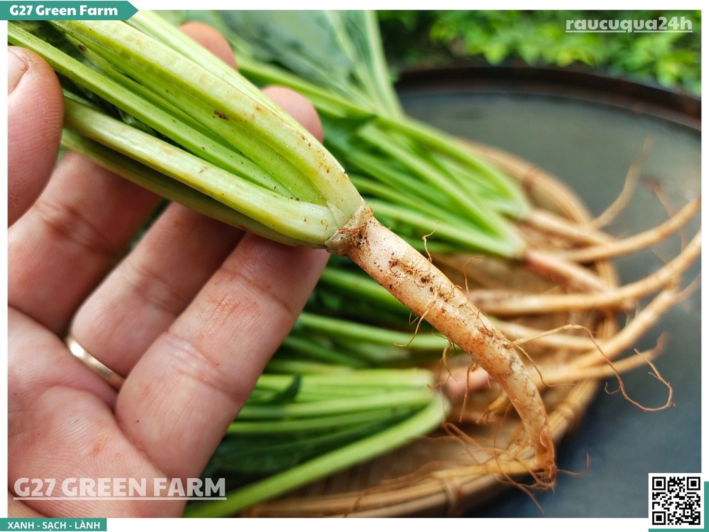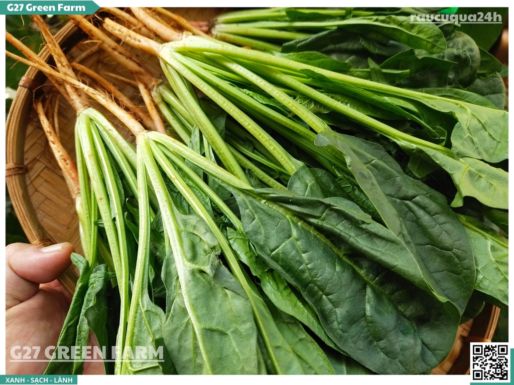 ✅ Rửa kỹ gốc: Phần gốc cải bó xôi thường bám nhiều đất cát, cần tách ra rửa thật kỹ.