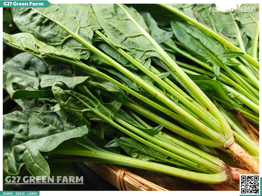 ✅ Rửa kỹ gốc: Phần gốc cải bó xôi thường bám nhiều đất cát, cần tách ra rửa thật kỹ.