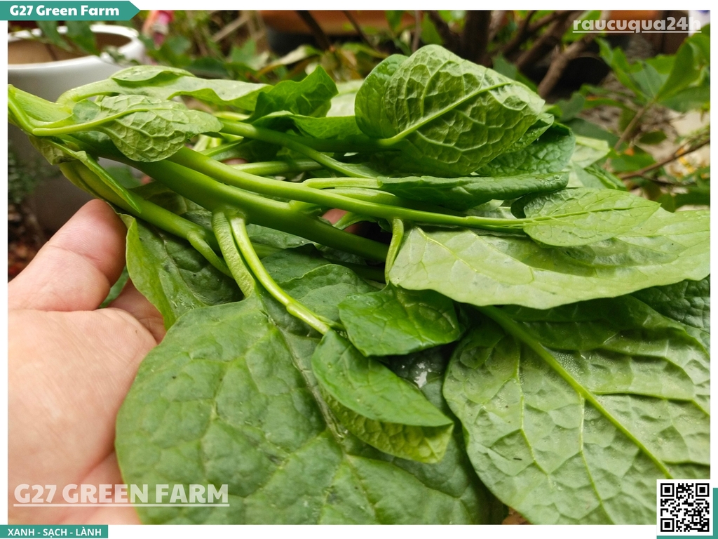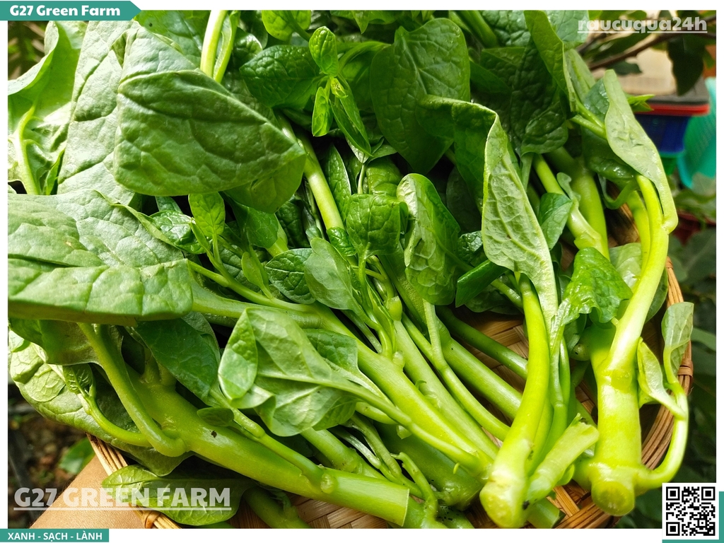 Chuẩn Sạch G27 Được trồng trên đất sạch, ngắt đọt non tươi mới mỗi ngày, lá mướt không bị rách nát hay sâu bệnh.