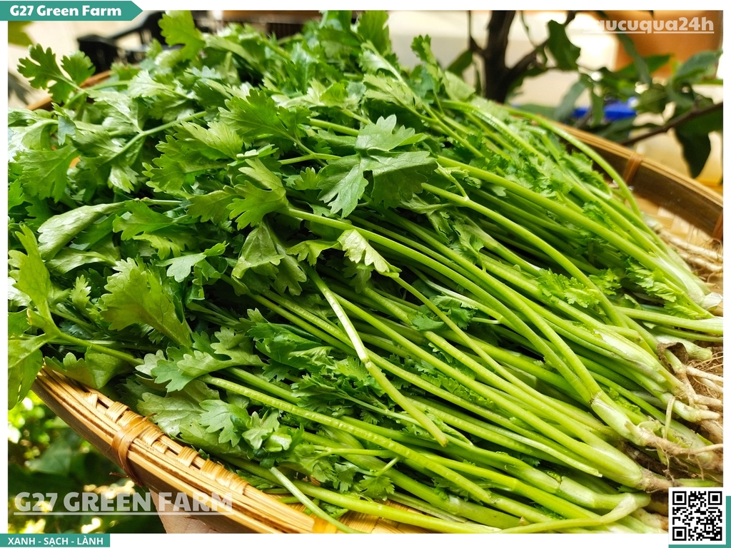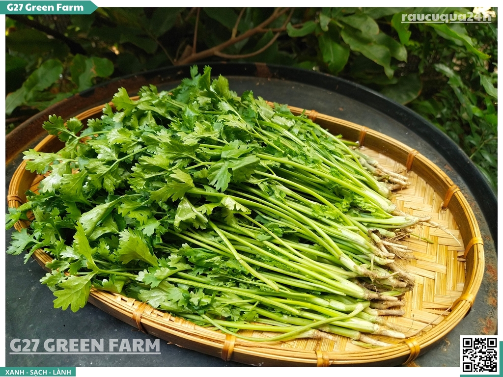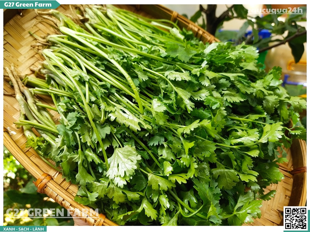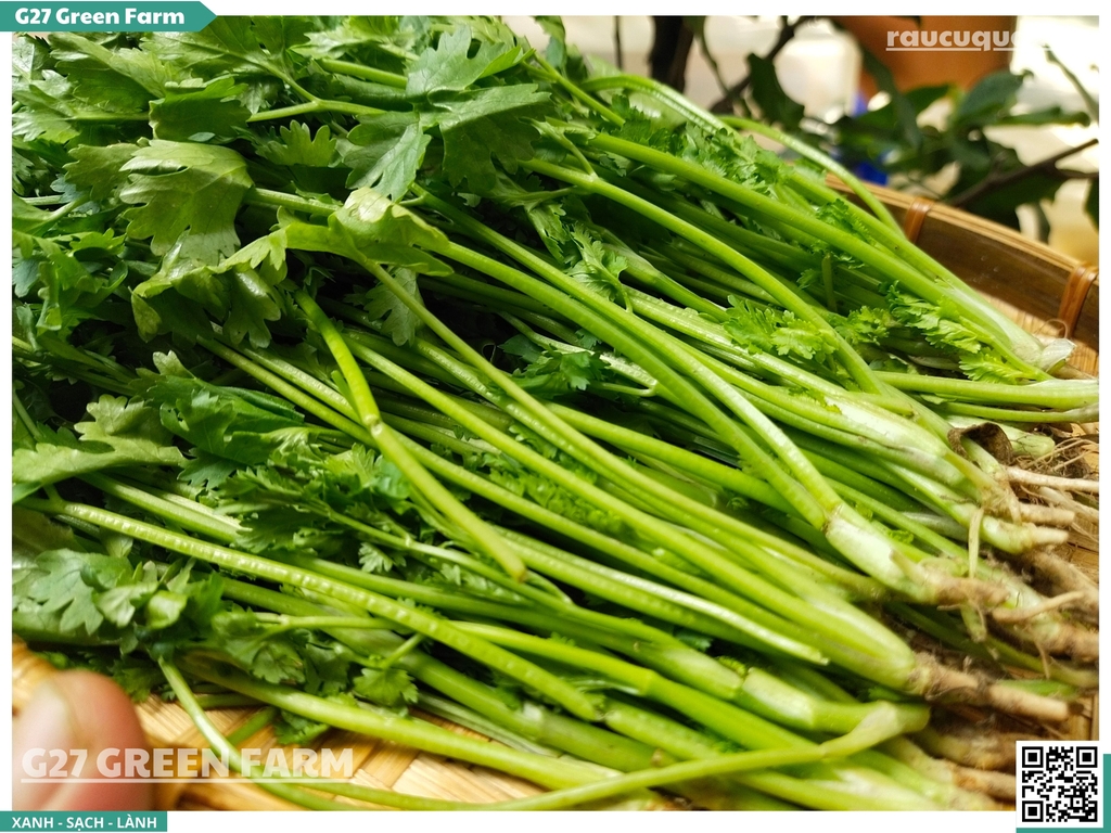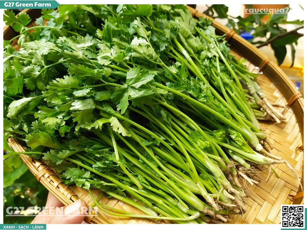 ✅ Rửa kỹ gốc: Phần rễ ngò bám đất nhiều, cần ngâm và rửa kỹ (rễ nấu nước dùng rất ngọt).