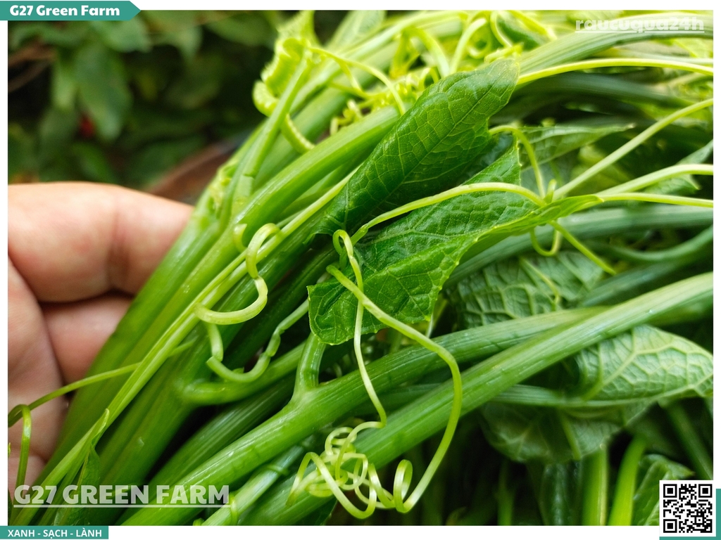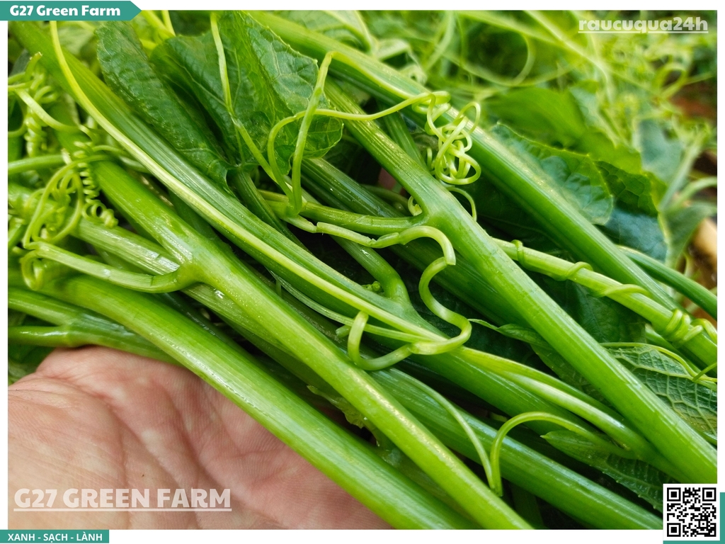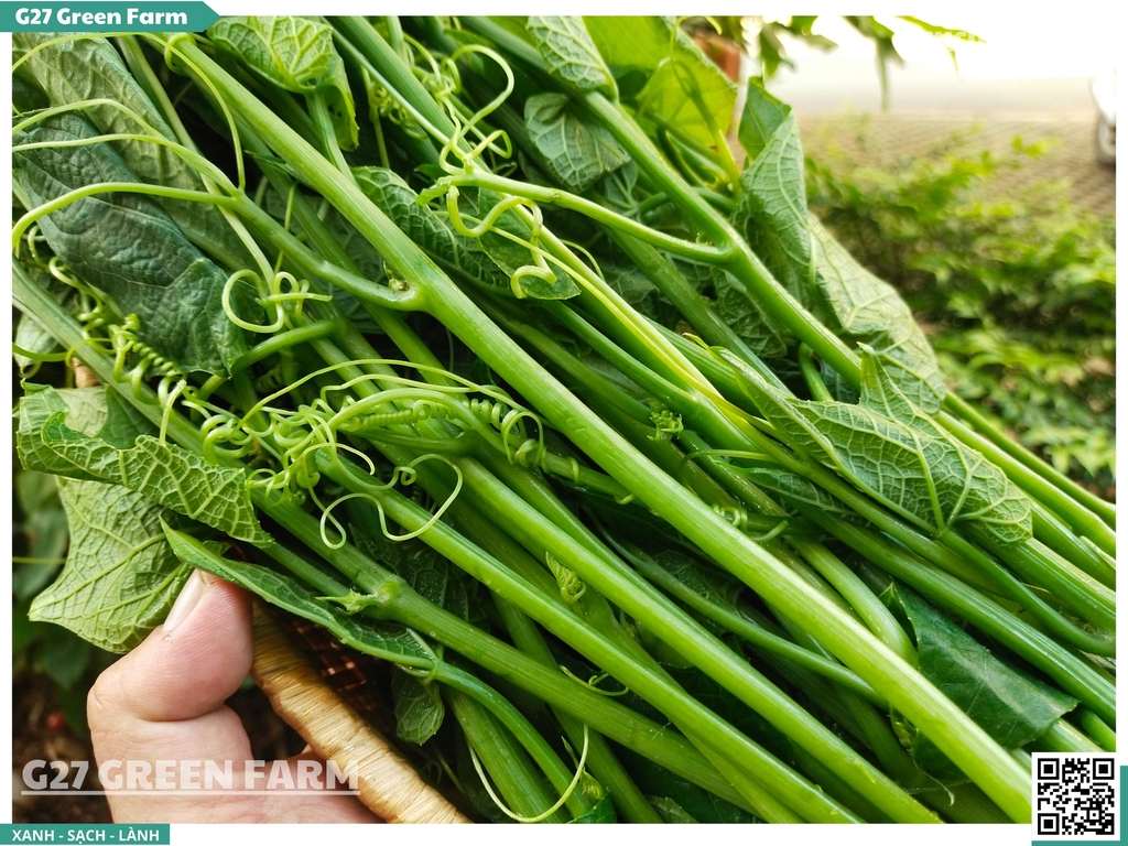 Chuẩn Sạch G27 Cắt lấy phần đọt non nhất từ giàn su su canh tác an toàn, đảm bảo chất lượng tươi ngon tuyệt đối.